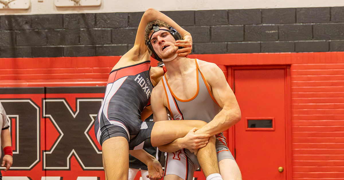 Colby crowned three individual champions at Hoxie: Ryder Dempewolf at 120, Nathan Schroeder at 138, and Eric Schroeder at 150. Dempewolf dominated his bracket with two falls to open the day before sealing the title with a 23-6 tech fall over Russell’s Xzephren Donner in the finals, scoring 23.5 team points. The performance earned Dempewolf the title of Outstanding Wrestler at the tournament.