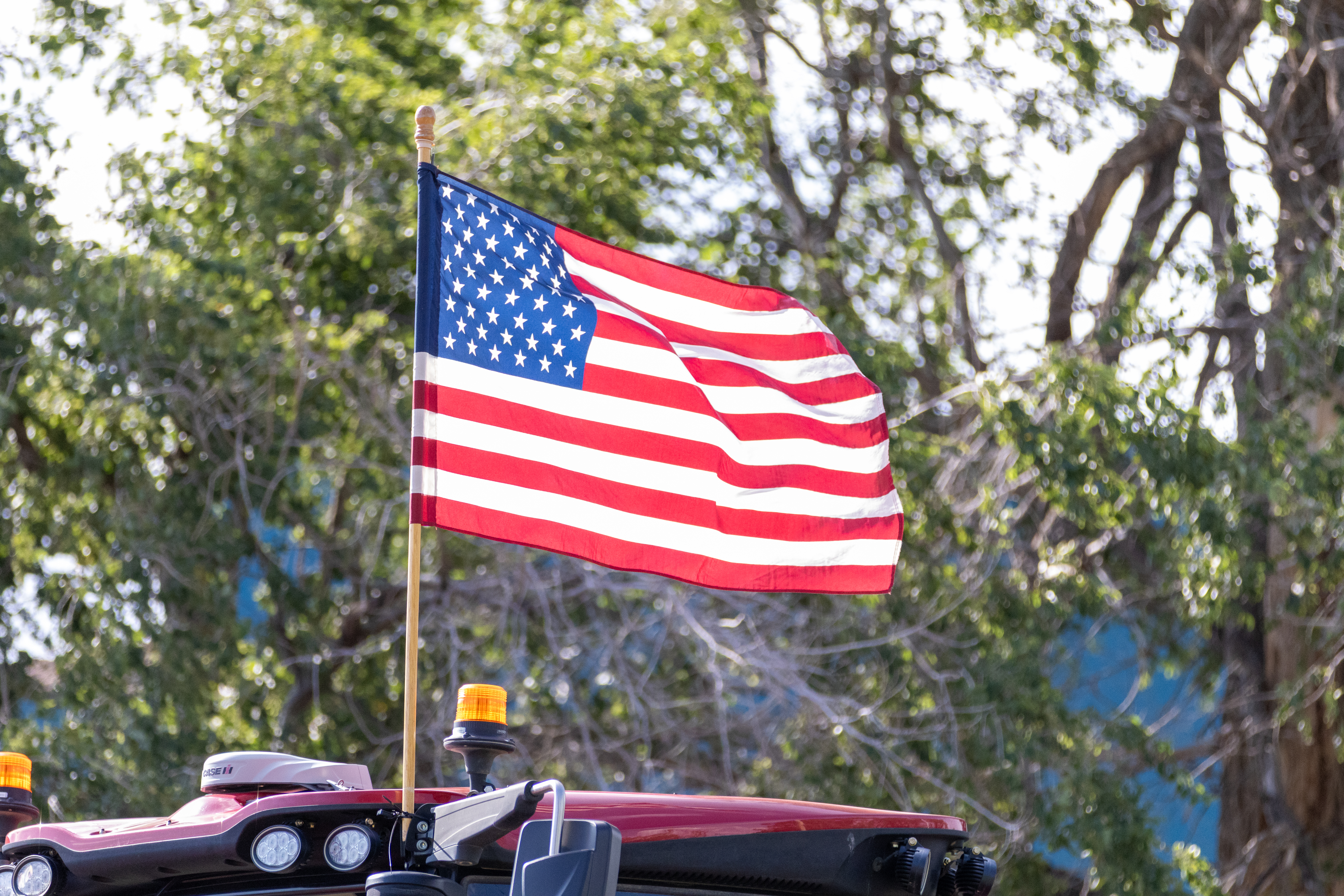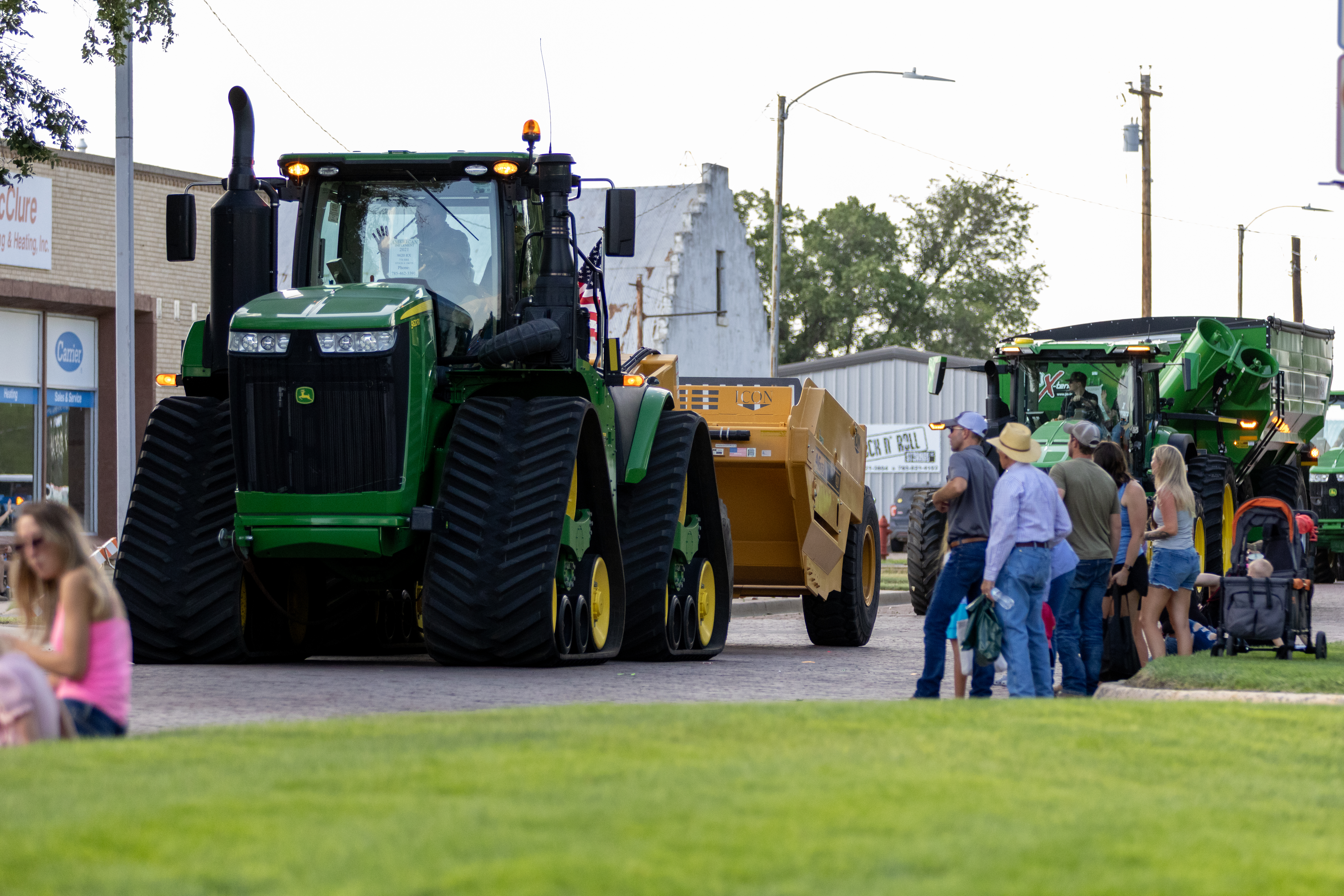 Agriculture was front and center with American Implement, Colby Ag, Lang Diesel, and other local dealerships rolling out an impressive convoy of tractors, sprayers, combines, and other farm equipment. Farmers & Merchants Bank tossed candy to the crowd, and McCarty Dairy brought smiles with their “cow-on-a-trailer” setup. Roof Masters Roofing, Great Western Tire, and Mittens Trucking each brought their own industrial flair to the mix.