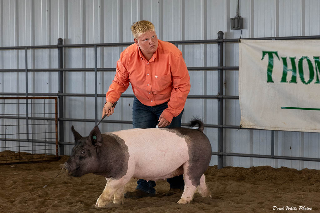 COLBY — The annual 4-H Round Robin Showmanship contest at the Thomas County Fair capped off the livestock exhibition week with excitement, competition, and celebration of skill across species. Onlookers filled the barns and arenas as top junior, intermediate, and senior 4-H showmen rotated through five different animal species—beef, sheep, goats, swine, and horses—demonstrating their adaptability and animal handling prowess.