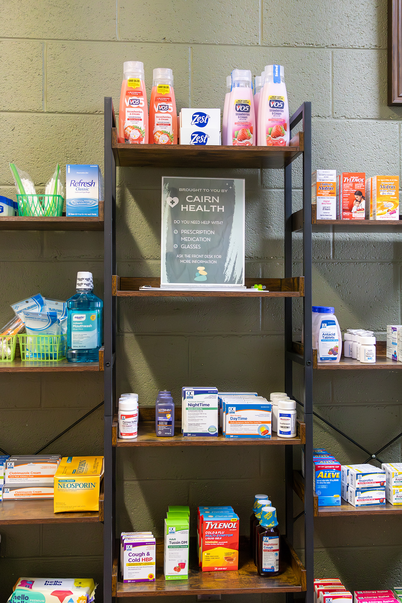 Through a partnership with Cairn Health and local grant funding, families can receive up to four over-the-counter items per week. There are no income requirements or lengthy applications — families simply provide basic contact information.