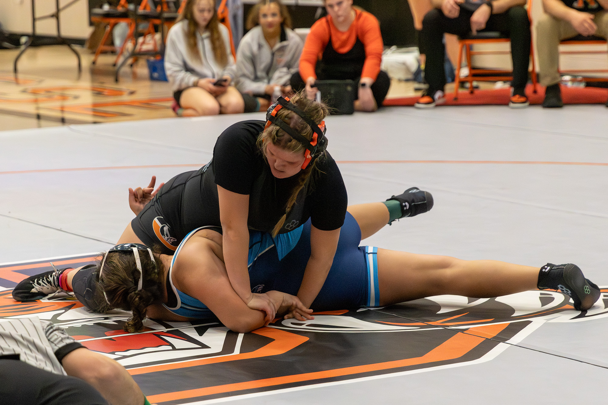 The middle and upper weights continued to pile up points for Colby. Heidi Gray placed third at 125 pounds after rebounding from early losses with a string of pinfall victories in the consolation rounds. Josalyn Boyson competed at 130 pounds and gained valuable experience against a deep field, adding points that helped maintain Colby’s cushion in the standings.